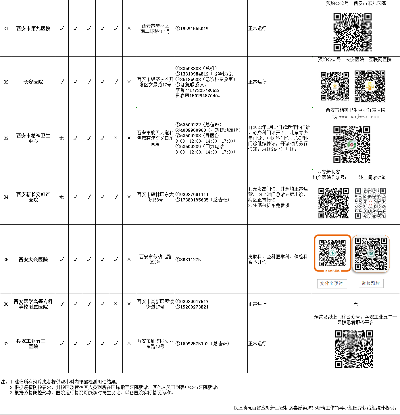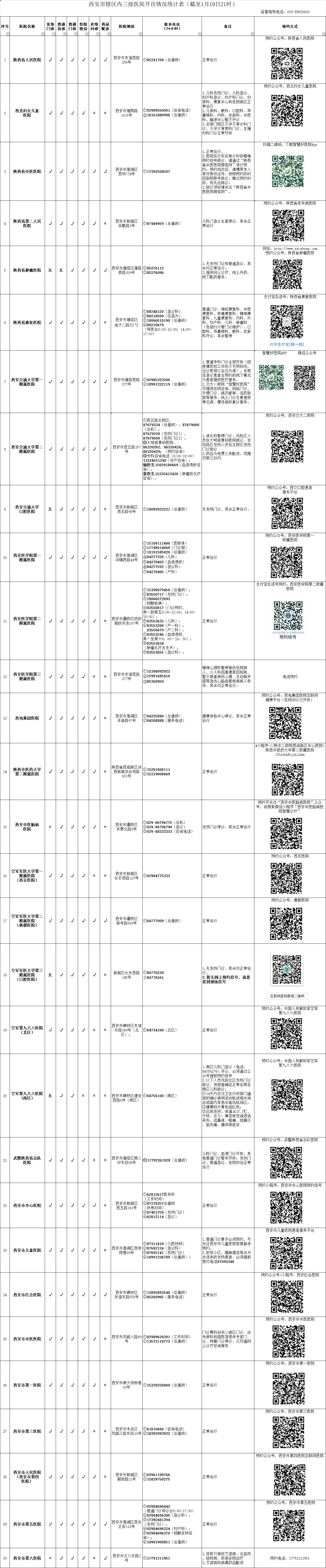 最新!西安市轄區(qū)內(nèi)三級醫(yī)院開診情況統(tǒng)計表(截至1月19日21時)