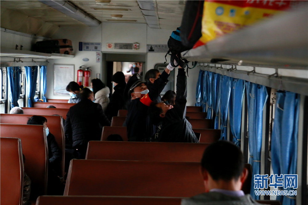 2022年1月17日乘警汪保山在列車上協(xié)助旅客放置行李