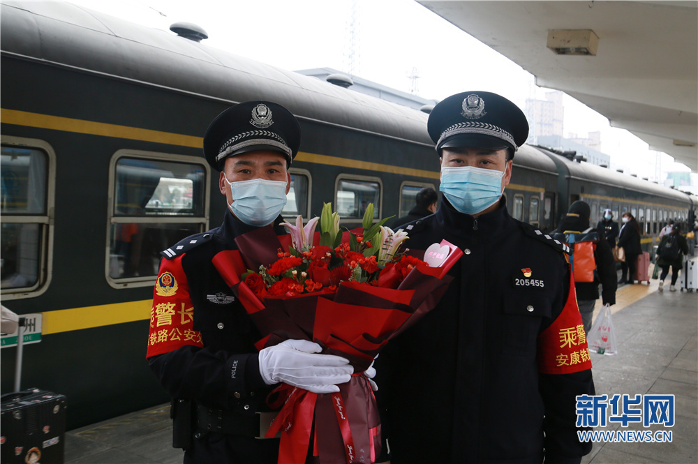 今年59歲的老汪是安康鐵路公安處乘警支隊(duì)的老乘警。1988年參加公安工作的他在紫陽站派出所工作了13年。2001年調(diào)入乘警支隊(duì),在乘警崗位上一待就是21年。而今年的春運(yùn)對老汪來說有著特殊的意義,春運(yùn)首日也是老汪最后一趟值乘。在安康站始發(fā)前,支隊(duì)政委呂昭琦專程送來鮮花表示對老汪多年工作的感謝。已堅(jiān)守34個(gè)春運(yùn),用老汪的話來說,自己沒有過轟轟烈烈的大事,只是做好本職的工作,從沒有對不起過頭頂?shù)木铡?/p>