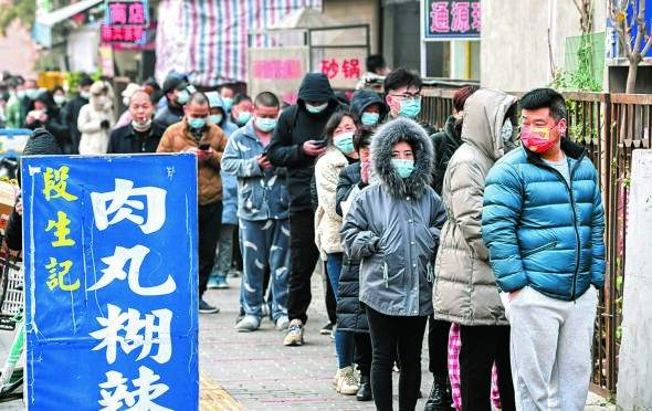 ▲1月20日,市民在西安市未央?yún)^(qū)一家小吃店前排隊(duì)購(gòu)買食品。自1月19日起,西安市曲江新區(qū)、未央?yún)^(qū)、經(jīng)開區(qū)、浐灞生態(tài)區(qū)、國(guó)際港務(wù)區(qū)陸續(xù)迎來解封。新華社記者陶明攝