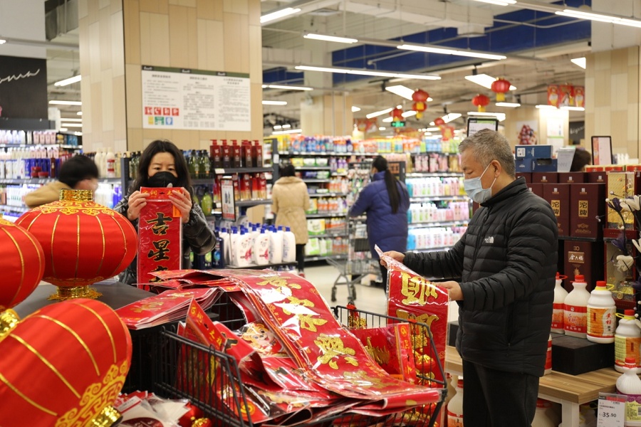 “今天解封了,我們趕緊出來透透氣,也趁機(jī)采購點(diǎn)年貨。”一名在年貨區(qū)挑選對聯(lián)的市民說,居家防疫期間很多日用品都用完了,在網(wǎng)上購買快遞也不一定能送到,小區(qū)解封后他早早就出門了,準(zhǔn)備多買點(diǎn)東西。