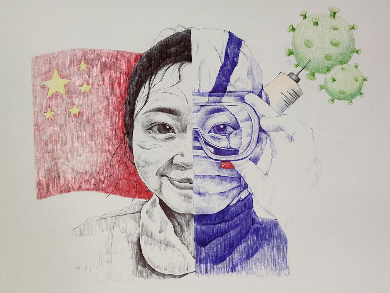 一幅幅插圖,展示、宣傳了疫情防控政策,同時也謳歌贊美了英勇戰(zhàn)斗在防疫一線的醫(yī)務工作者、各級志愿者和工作人員,為抗疫工作凝聚團結一心的精神防線。