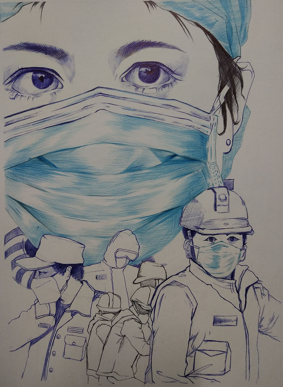 2021年12月,新冠肺炎疫情在西安突然暴發(fā),面對突如其來的疫情和嚴峻復雜的防控形勢,在加強落實疫情防控、保障師生健康的同時,西安工程大學服裝與藝術設計學院積極應對,組織全院師生有序、規(guī)范開啟2021年秋季期末課程結課的線上教學。任課教師及時調(diào)整結課作業(yè)主題,充分利用視覺傳達設計專業(yè)特點,組織同學們嚴謹認真、激情飽滿地用畫筆以藝抗疫,致敬最美逆行者!