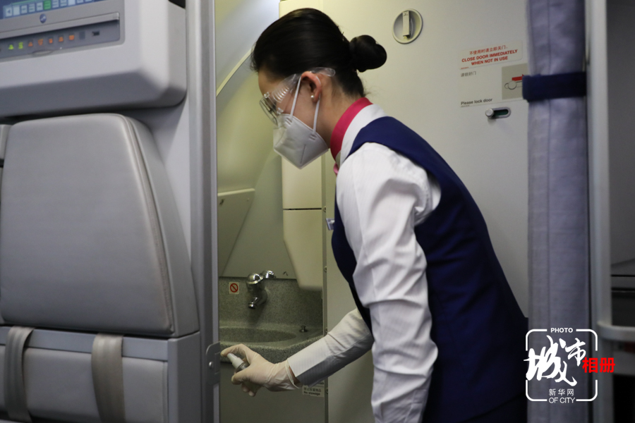 為飛機的廁所等重要部位進行消毒也是徐秋月和同事們的必備課。除了這些日常的防護,徐秋月還要組織乘務(wù)組進行應(yīng)急演練,確保每一位乘務(wù)員在遇到發(fā)熱乘客時都能立即正確應(yīng)對。新華網(wǎng)發(fā)(黃勇 攝)陳雨 文