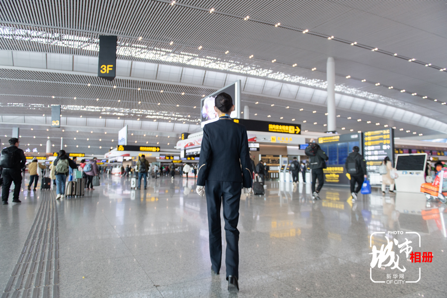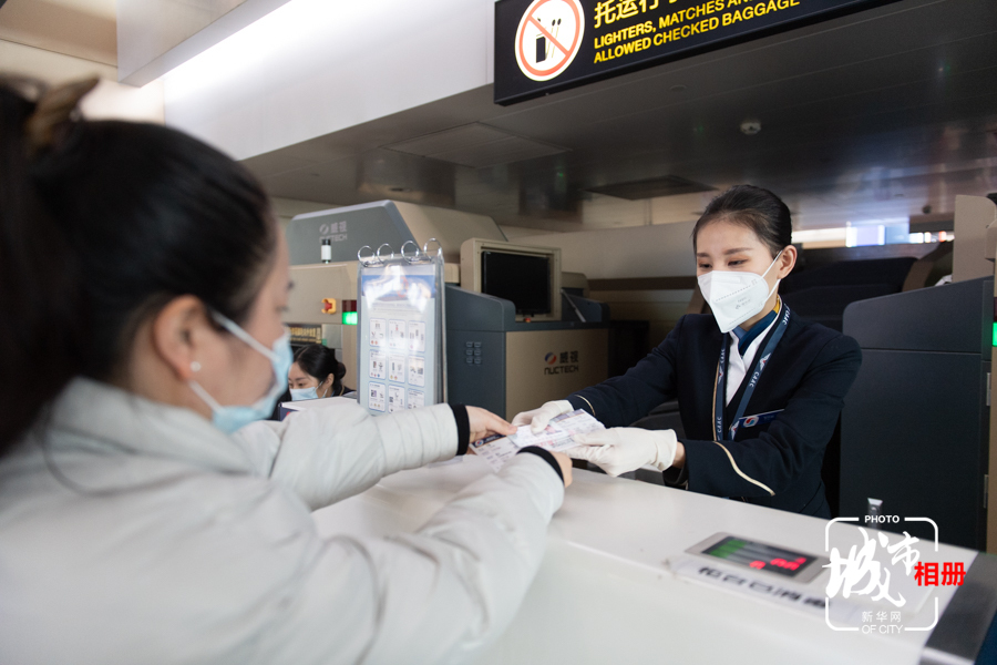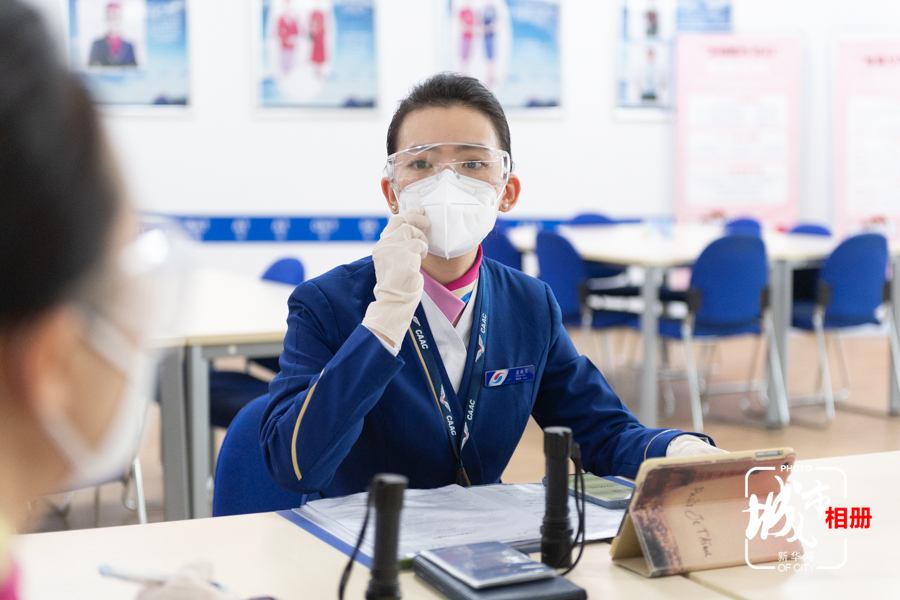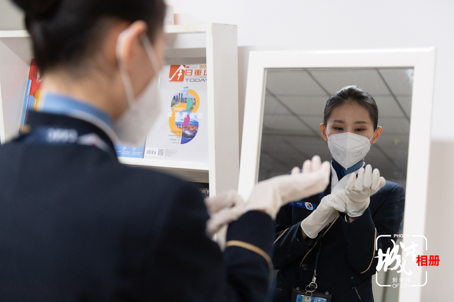 回憶新冠肺炎疫情第一年的春運,賀佳麗說,空乘需要直接接觸過往人員,最初還是很擔(dān)心,但是為了守好這道安全“關(guān)”,同事們都拼盡全力。新華網(wǎng) 耿駿宇 攝 陳雨 文