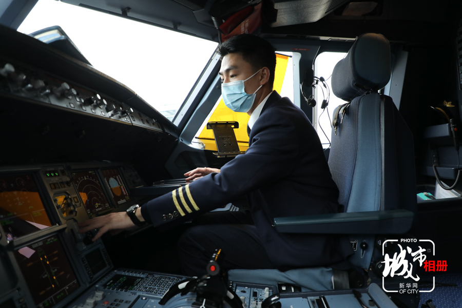 和空姐一樣在空中為大家的安全護航的還有飛行員。今年27歲的劉曉周就是其中的一員。新華網(wǎng)發(fā)(黃勇 攝)陳雨 文