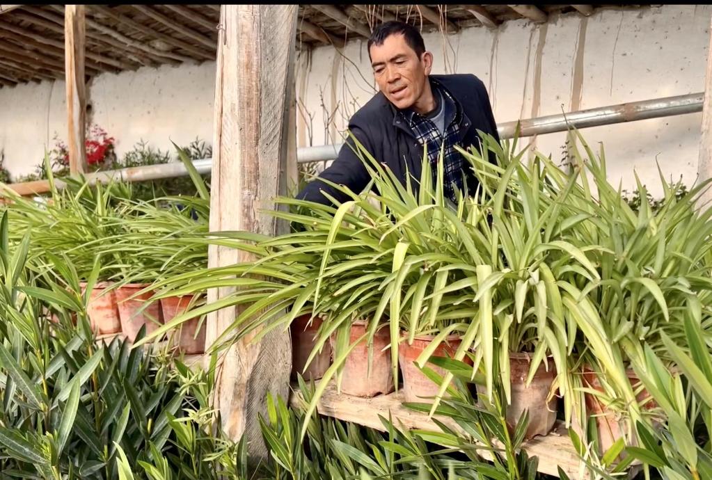寒冬臘月,室外氣溫達零下10多攝氏度,奧圖拉庫勒達西村農(nóng)民艾力·艾合買提家前院450平方米的大棚里,卻是春意盎然,20多種花卉苗生機勃勃。“現(xiàn)在南疆農(nóng)村老百姓很喜歡買花擺在家里,像這種艾德萊斯花、每日春、蘆葦花,賣得特別好。”他告訴記者,今年打算繼續(xù)擴大花卉品種。