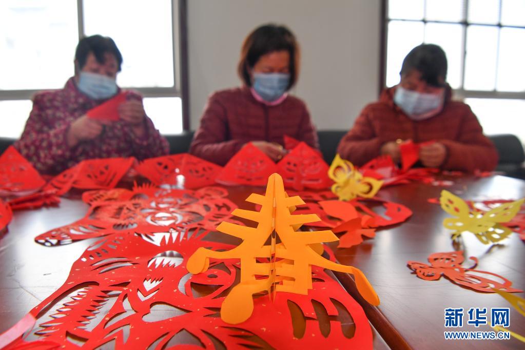 1月27日,西安市鄠邑區(qū)幸福佳苑社區(qū)居民在社區(qū)活動(dòng)中心剪窗花。新華社記者 張博文 攝