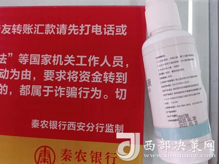 決策熱線|武先生:4月26日上午前往秦農(nóng)銀行長安區(qū)支行辦理業(yè)務,營業(yè)大廳共有9個業(yè)務窗口,只有3個正常辦理個人業(yè)務,致使多數(shù)人在大廳內(nèi)排隊等候,隊伍已排到了營業(yè)廳門口。辦理銀行卡用了近2個小時,銀行業(yè)務效率低。隨后發(fā)現(xiàn)窗口擺放的防疫消毒液已過效期(生產(chǎn)日期:2020.1.30,有效期至:2022.1.29),防疫物資疏于管理。