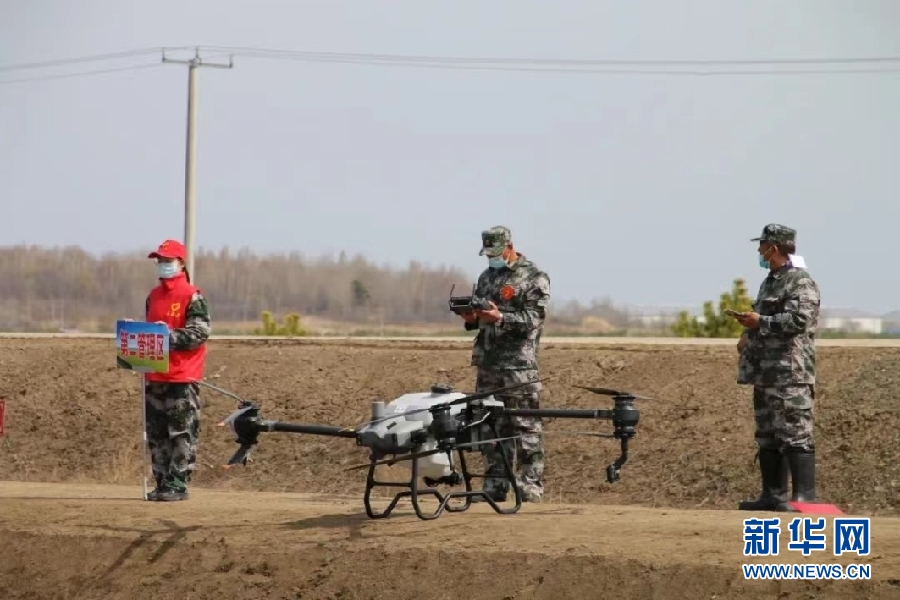 北大荒集團建三江分公司八五九農(nóng)場有限公司無人植保機噴肥比賽現(xiàn)場。新華網(wǎng)發(fā)(杜雨潤 攝)