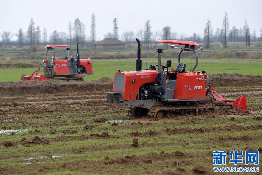 在江西省南昌縣蔣巷鎮(zhèn)大田農(nóng)社,兩臺(tái)無(wú)人旋耕機(jī)正在翻地作業(yè)。新華社記者 彭昭之?dāng)z