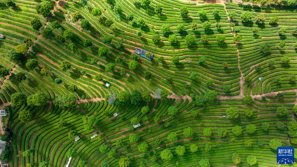 云南普洱市思茅區(qū)南屏鎮(zhèn)整碗村的有機(jī)茶葉基地(5月13日攝,無人機(jī)照片)。新華社記者江文耀攝