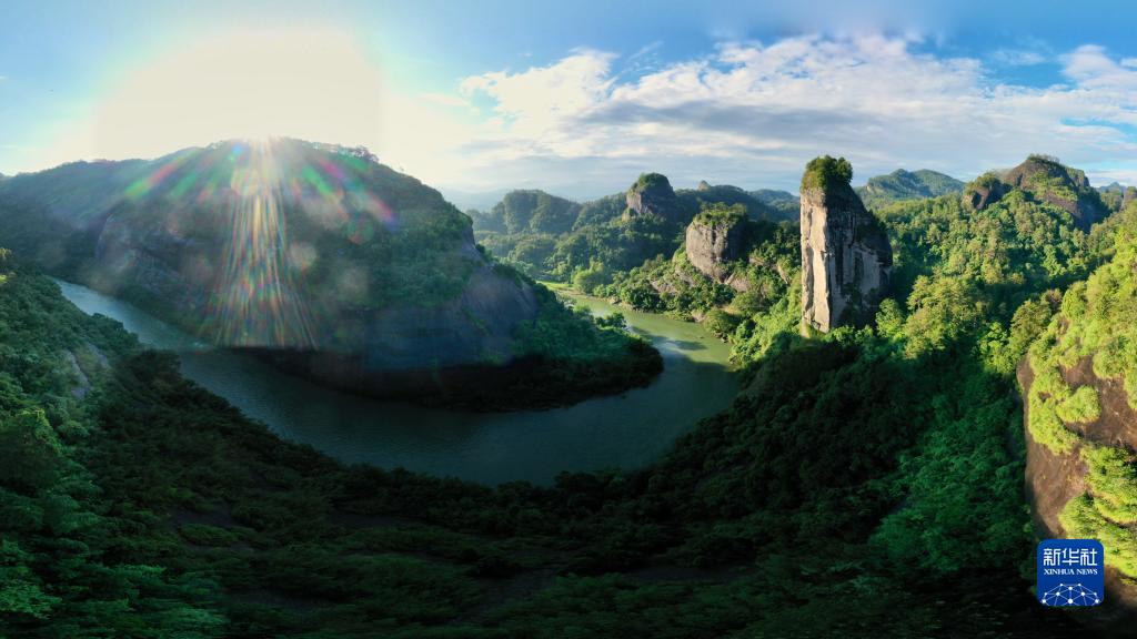 武夷山的自然風(fēng)光獨(dú)樹一幟,核心景區(qū)屬丹霞地貌,景區(qū)內(nèi)一條幽深清澈的九曲溪盤環(huán)山中,兩岸丹崖林立,千姿百態(tài)。千百年來,得天獨(dú)厚的地理環(huán)境和自然條件,孕育了武夷山舉世稱奇的生物多樣性。
