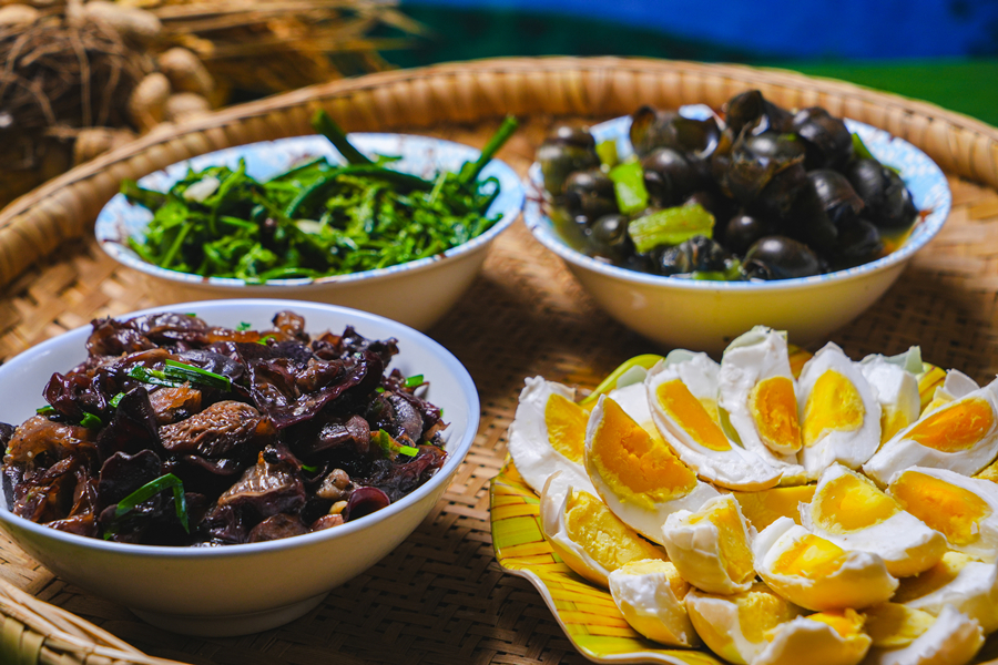 哈尼菜肴(5月28日攝)。綠春縣文化和旅游局 供圖