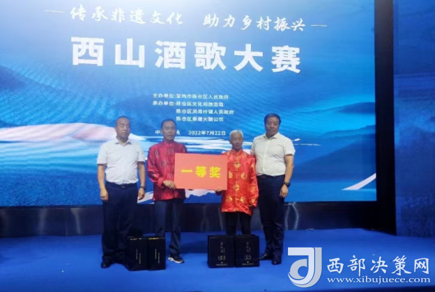 西部決策網(wǎng)訊(劉恒 通訊員 王榮)為傳承陜西省非物質(zhì)文化遺產(chǎn)“西山酒歌”文化,積極探索鄉(xiāng)村特色文化產(chǎn)業(yè)助推鄉(xiāng)村振興,進一步豐富人民群眾文化生活,展示廣大人民群眾的良好精神風(fēng)貌。7月22日由寶雞市陳倉區(qū)人民政府主辦,區(qū)文旅局、鳳閣嶺鎮(zhèn)人民政府承辦的“西山酒歌”大賽在寶雞奧斯頓酒店圓滿落下帷幕。鳳閣嶺鎮(zhèn)6個參賽隊40余名選手參加了此次比賽。區(qū)政協(xié)主席茍曉明,區(qū)委常委、常務(wù)副區(qū)長屈亞奇,區(qū)委常委、人武部政委王斌,區(qū)委常委、宣傳部長徐宏剛,區(qū)人大常委會副主任尉曉平,寶雞市西山建委副主任齊文強,市陸港新城紀(jì)工委書記李巖,區(qū)法院黨組書記、院長田廣玉,區(qū)文化和旅游局局長齊智雄,鳳閣嶺鎮(zhèn)黨委書記張小衛(wèi),鎮(zhèn)長牟峰濤,區(qū)級各部門、各鎮(zhèn)街有關(guān)領(lǐng)導(dǎo)參加活動。