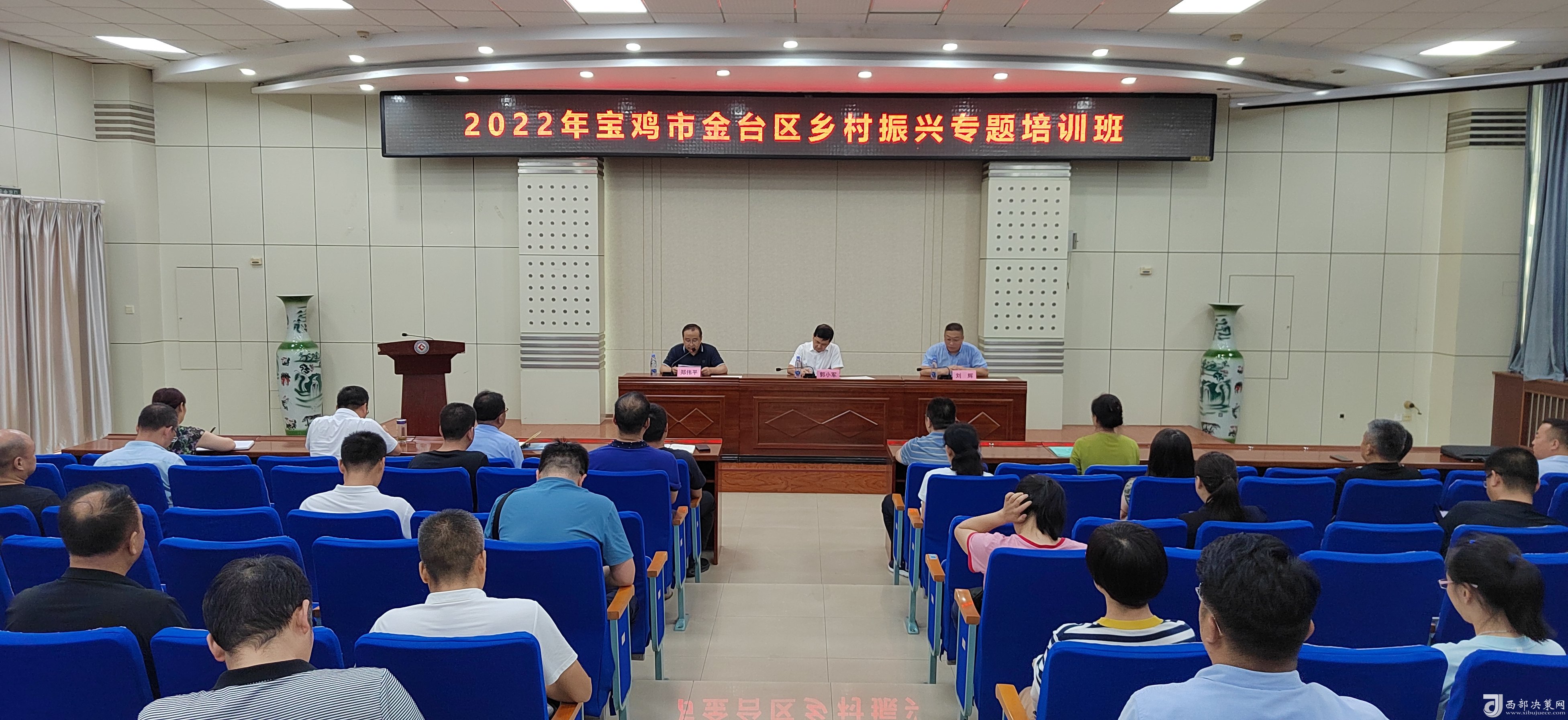 西部決策網(wǎng)訊 8月6日下午,為期三天的“2022年寶雞市金臺區(qū)鄉(xiāng)村振興專題培訓(xùn)班”結(jié)束了!60余學(xué)員順利的拿到了結(jié)業(yè)證。寶雞文理學(xué)院經(jīng)濟(jì)管理學(xué)院院長、陜西鄉(xiāng)村振興研究中心主任劉輝;金臺區(qū)政府副區(qū)長郭小軍出席了結(jié)業(yè)儀式。參加結(jié)業(yè)儀式的還有金臺區(qū)鄉(xiāng)村振興局主要負(fù)責(zé)人、分管領(lǐng)導(dǎo),各鎮(zhèn)涉農(nóng)街道黨(工)委書記和鄉(xiāng)村振興工作分管領(lǐng)導(dǎo),區(qū)委實施鄉(xiāng)村振興戰(zhàn)略領(lǐng)導(dǎo)小組和區(qū)委抓黨建促鄉(xiāng)村振興領(lǐng)導(dǎo)小組各成員單位分管領(lǐng)導(dǎo)。結(jié)業(yè)儀式由金臺區(qū)鄉(xiāng)村振興局局長鄭偉平主持。