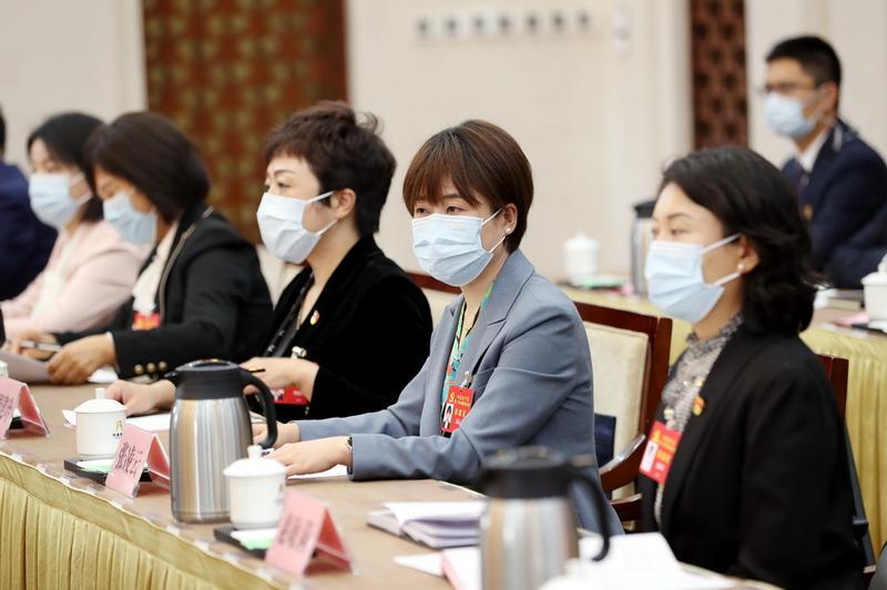按照中國共產(chǎn)黨第二十次全國代表大會統(tǒng)一安排,陜西省代表團10月15日在住地召開全體會議。左一為路生梅代表。