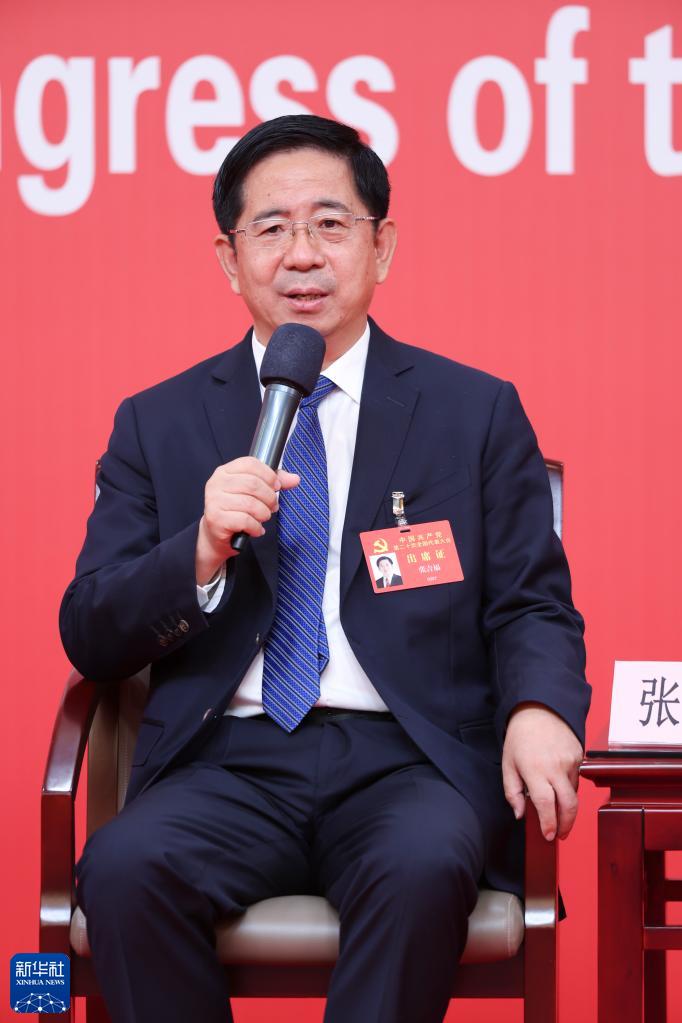 10月18日,中國共產黨第二十次全國代表大會新聞中心舉行集體采訪,請北京、天津、河北、山西、內蒙古、遼寧、吉林代表團新聞發(fā)言人出席,介紹代表團學習討論二十大報告情況,并回答記者提問。這是山西省委常委、常務副省長張吉福在回答記者提問。新華社記者 陳建力 攝