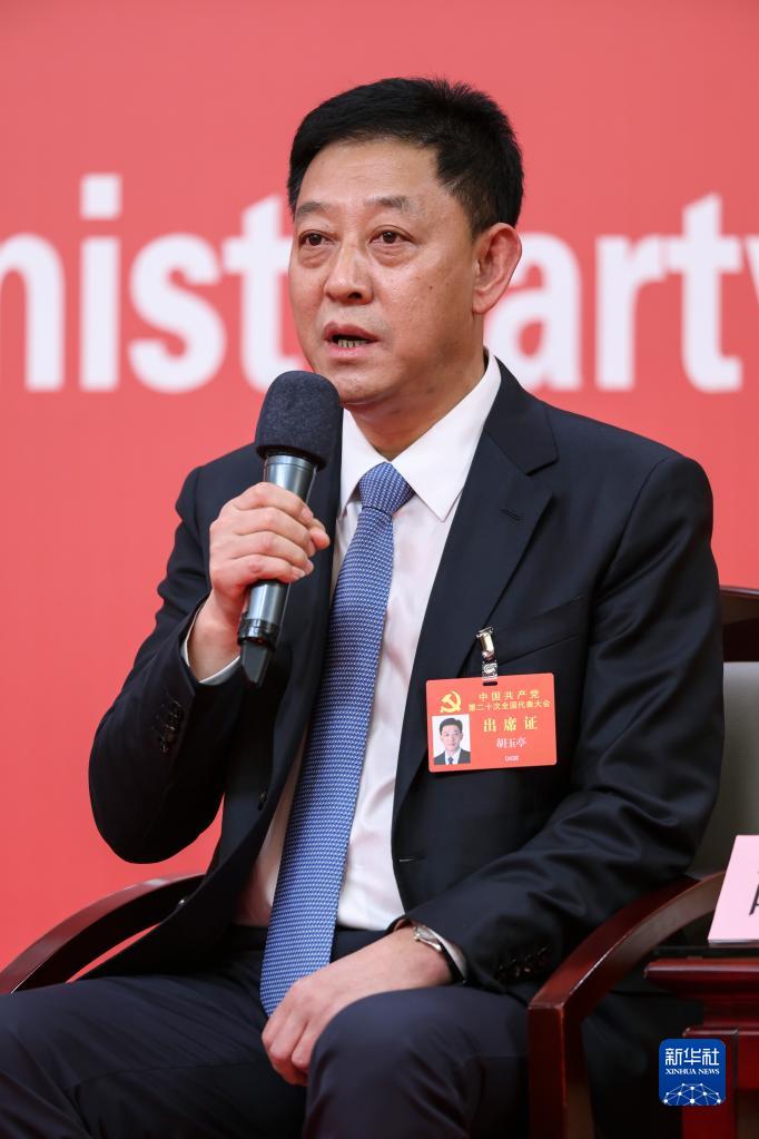 10月18日,中國共產黨第二十次全國代表大會新聞中心舉行集體采訪,請北京、天津、河北、山西、內蒙古、遼寧、吉林代表團新聞發(fā)言人出席,介紹代表團學習討論二十大報告情況,并回答記者提問。這是遼寧省委副書記、大連市委書記胡玉亭在回答記者提問。新華社記者 陳建力 攝