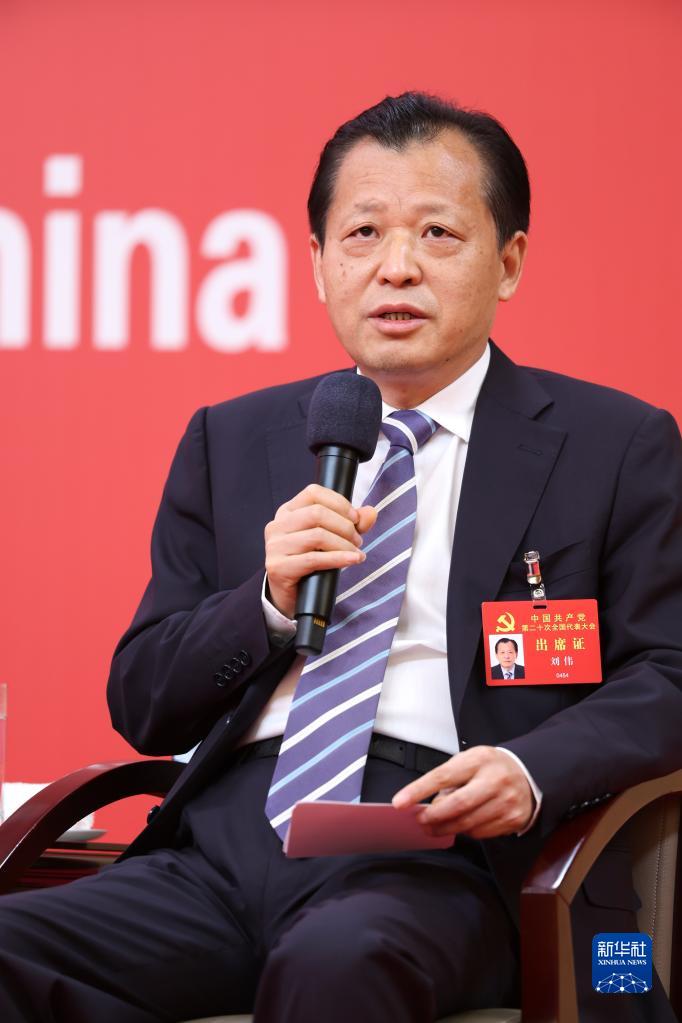 10月18日,中國共產黨第二十次全國代表大會新聞中心舉行集體采訪,請北京、天津、河北、山西、內蒙古、遼寧、吉林代表團新聞發(fā)言人出席,介紹代表團學習討論二十大報告情況,并回答記者提問。這是吉林省委副書記劉偉在回答記者提問。新華社記者 陳建力 攝