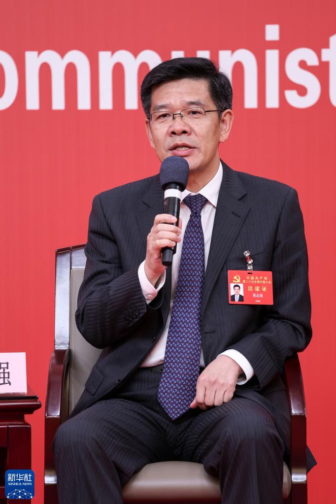 10月18日,中國共產黨第二十次全國代表大會新聞中心舉行集體采訪,請北京、天津、河北、山西、內蒙古、遼寧、吉林代表團新聞發(fā)言人出席,介紹代表團學習討論二十大報告情況,并回答記者提問。這是內蒙古自治區(qū)黨委常委、自治區(qū)常務副主席黃志強在回答記者提問。新華社記者 張玉薇 攝
