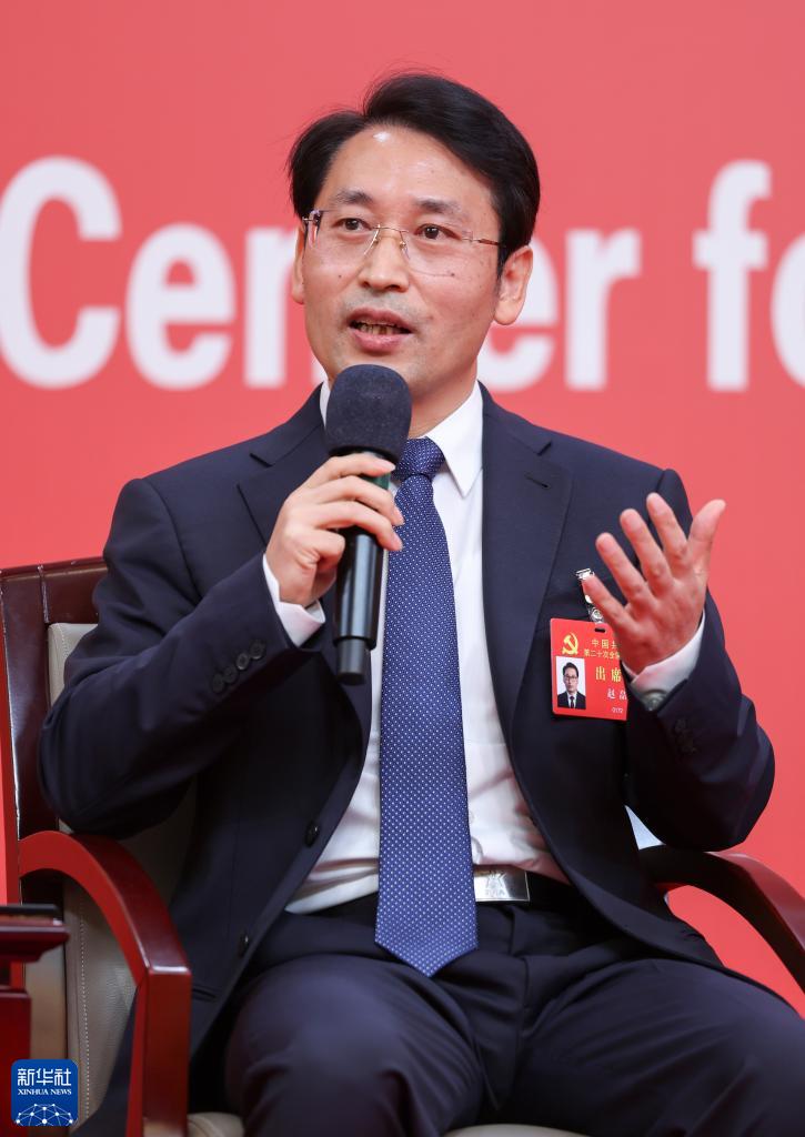 10月18日,中國共產黨第二十次全國代表大會新聞中心舉行集體采訪,請北京、天津、河北、山西、內蒙古、遼寧、吉林代表團新聞發(fā)言人出席,介紹代表團學習討論二十大報告情況,并回答記者提問。這是北京市委常委、秘書長趙磊在回答記者提問。新華社記者 陳建力 攝