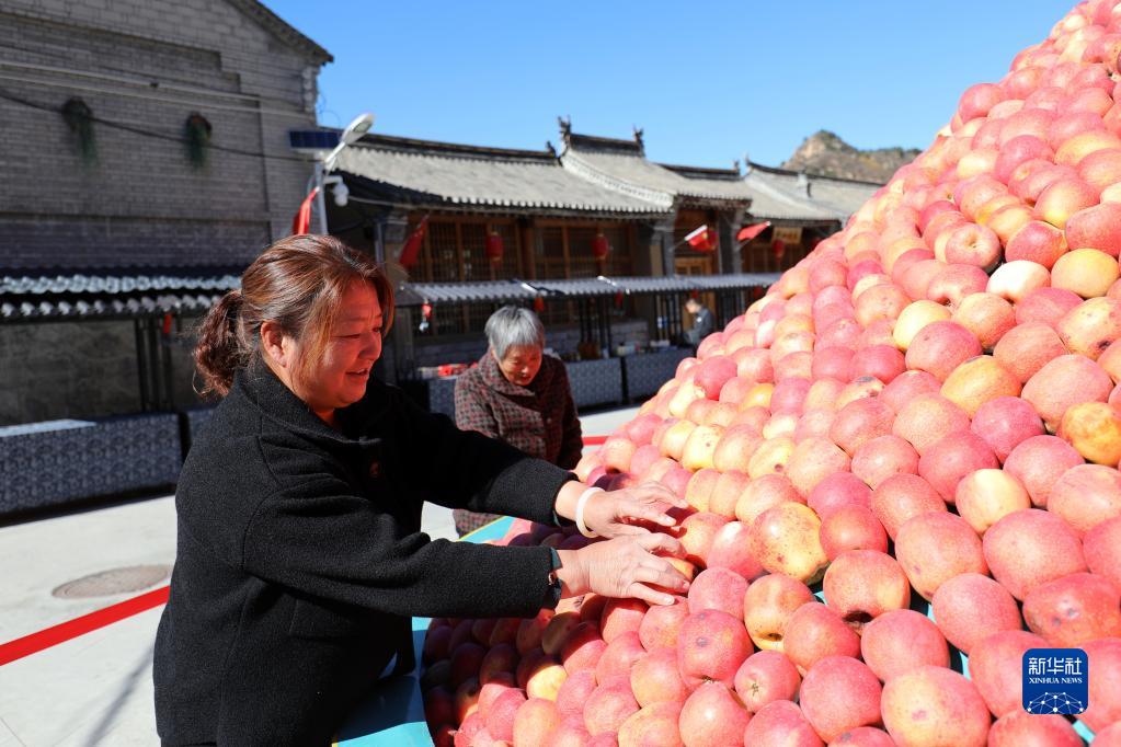 10月17日,河北阜平縣駱駝灣村村民在整理蘋(píng)果。新華社記者 駱學(xué)峰 攝