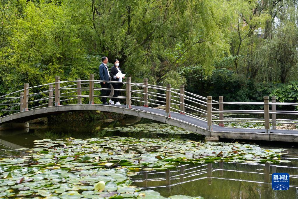 10月16日,在貴州貴陽(yáng)觀山湖區(qū)金陽(yáng)街道,金元社區(qū)黨總支副書(shū)記安春燕(右)與居民交流。新華社記者 楊文斌 攝