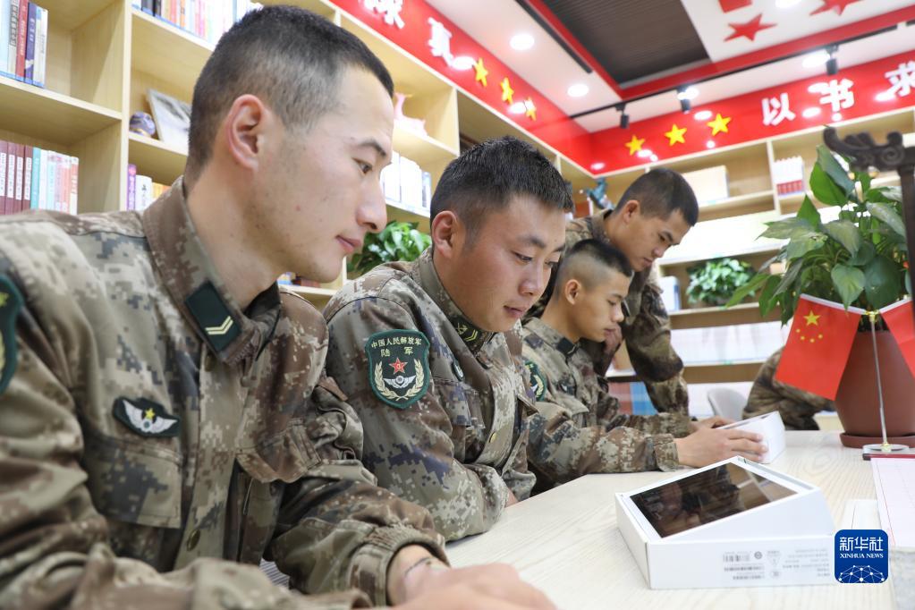 中共中央總書記、國家主席、中央軍委主席習(xí)近平24日下午出席軍隊領(lǐng)導(dǎo)干部會議時發(fā)表的重要講話,在解放軍和武警部隊引起強烈反響。這是新疆軍區(qū)奧爾托蘇邊防連官兵在圖書室認真學(xué)習(xí)習(xí)主席重要講話(10月25日攝)。新華社發(fā)(劉南松 攝)