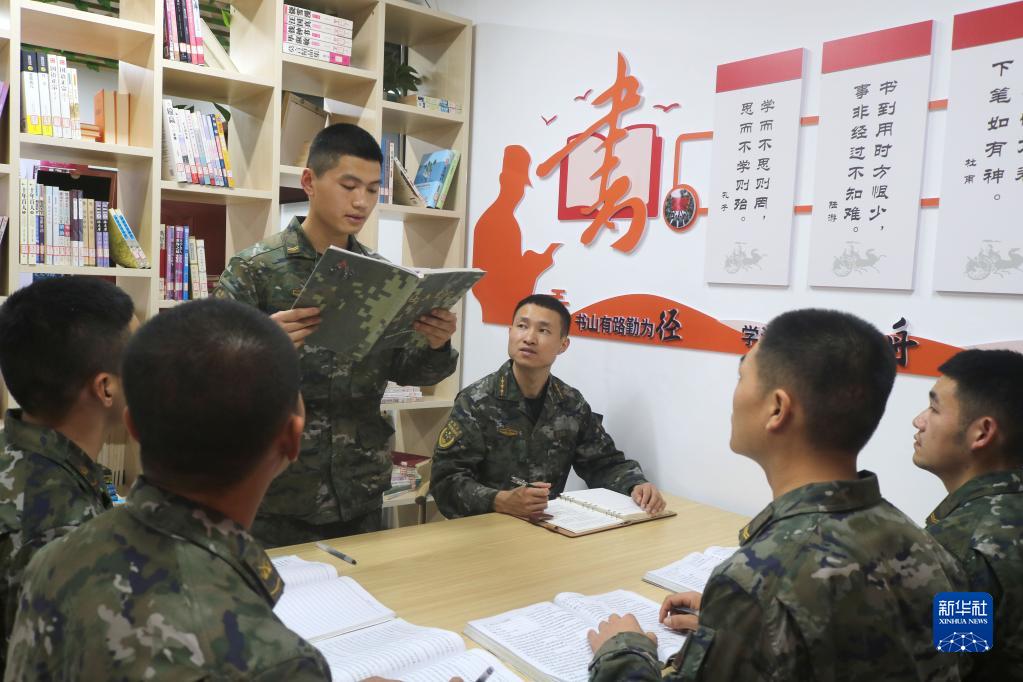 中共中央總書記、國家主席、中央軍委主席習(xí)近平24日下午出席軍隊領(lǐng)導(dǎo)干部會議時發(fā)表的重要講話,在解放軍和武警部隊引起強烈反響。這是南部戰(zhàn)區(qū)陸軍第74集團軍某合成旅“大渡河連”組織官兵認真學(xué)習(xí)習(xí)主席重要講話(10月25日攝)。新華社發(fā)(薛健 攝)