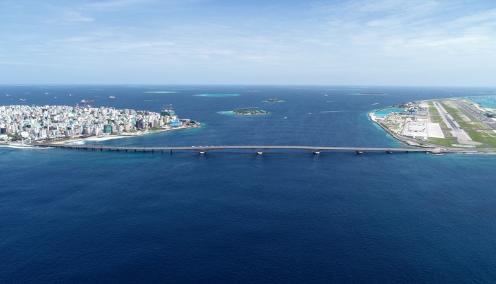 這是在馬爾代夫航拍的連接首都馬累和機(jī)場(chǎng)島的中馬友誼大橋(2019年8月30日攝)。新華社發(fā)(王明亮 攝)