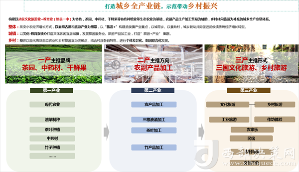 打造城鄉(xiāng)全產(chǎn)業(yè)鏈。構(gòu)建以武侯文化旅游業(yè)+教育業(yè)(勉縣一中)為特色,茶園、中藥材、干鮮果等特色種植業(yè)等生態(tài)農(nóng)業(yè)為基礎(chǔ),農(nóng)副產(chǎn)品生產(chǎn)加工貿(mào)易為輔助,鄉(xiāng)村休閑旅游為互補(bǔ)的城鄉(xiāng)全產(chǎn)業(yè)鏈體系。