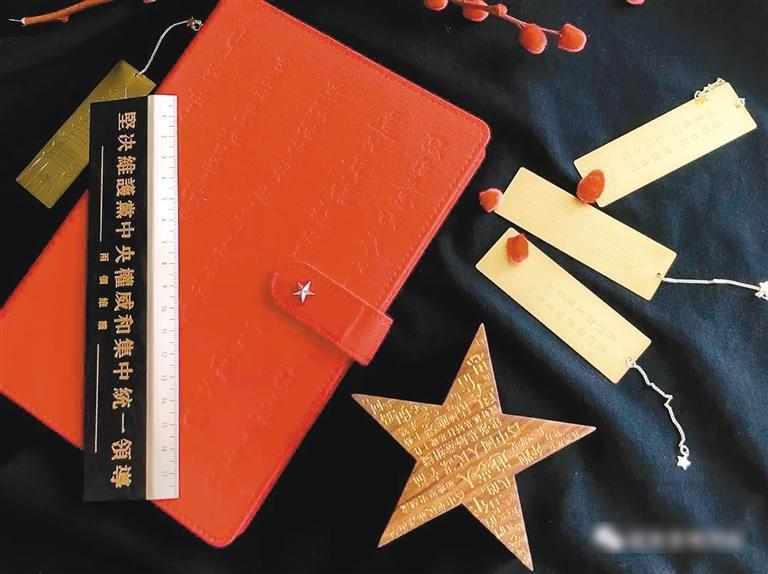 文創(chuàng)精品“紅寶”套裝,包括筆記本、便簽夾、直尺、金屬書簽和紙膠帶等五件產(chǎn)品。此套文創(chuàng)產(chǎn)品榮獲國家知識產(chǎn)權(quán)局頒發(fā)的國家外觀設(shè)計專利證書,“紅”字代表“紅軍”“紅色圣地”,“寶”字代表“中國革命之瑰寶”。紅寶用現(xiàn)代語言講述紅色故事,強(qiáng)化紅色文化,傳承紅色精神。以新時代背景下的紅色精神號召全民堅定意志,勇往直前,為實現(xiàn)中華民族偉大復(fù)興的中國夢而不懈奮斗。