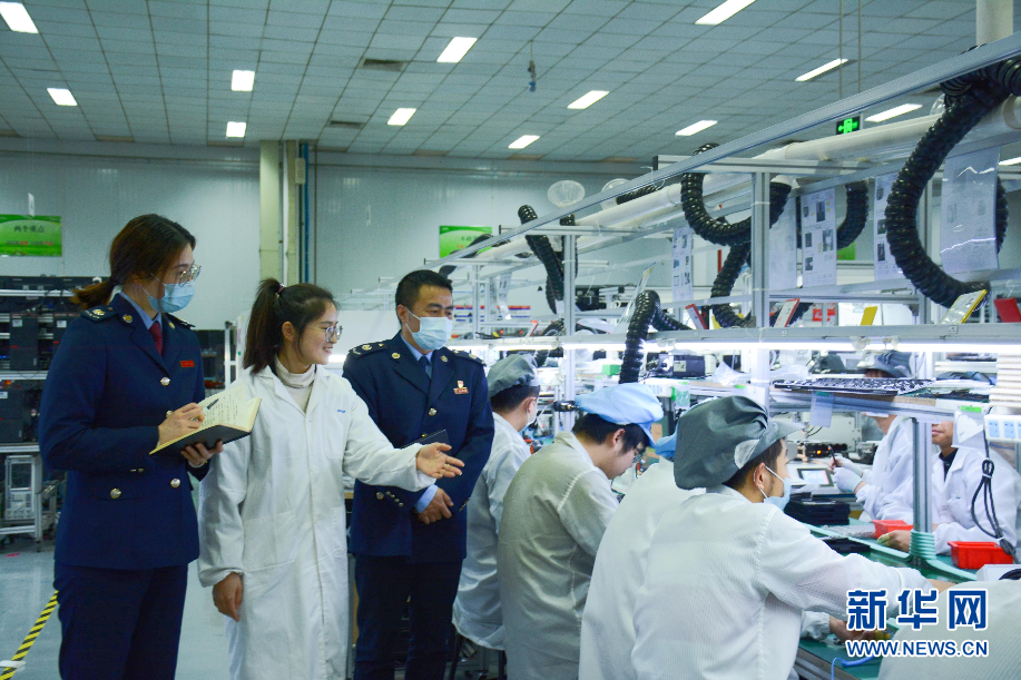 稅務(wù)人員在神通科技集團(tuán)股份有限公司廠區(qū)了解產(chǎn)品情況。新華網(wǎng)發(fā)