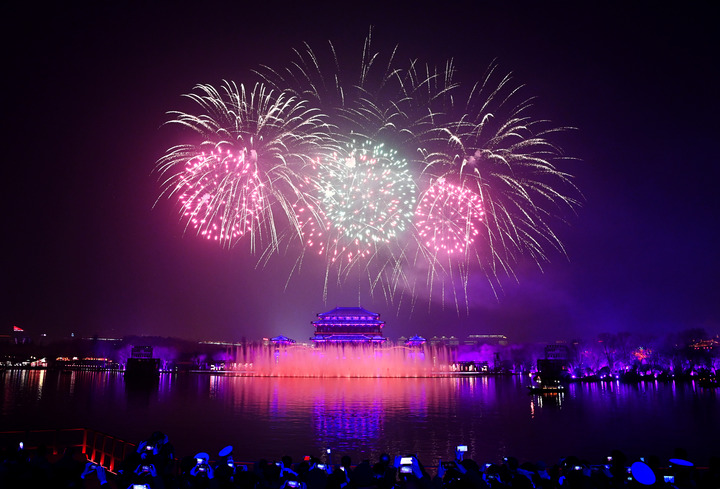 2月5日,西安大唐芙蓉園內(nèi)進(jìn)行的煙花晚會(huì)現(xiàn)場(chǎng)。新華社記者 劉瀟攝
