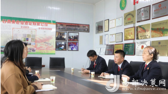 西部決策網(wǎng)訊(記者帥華鋒)  近日,甘肅省隴南市兩當(dāng)縣法院黨組書(shū)記、院長(zhǎng)鄧剛帶領(lǐng)黨組成員、副院長(zhǎng)余淑芳、專委董高彥一行先后到兩當(dāng)興源中藥飲片有限責(zé)任公司和甘肅果老仙酒業(yè)走訪調(diào)研。