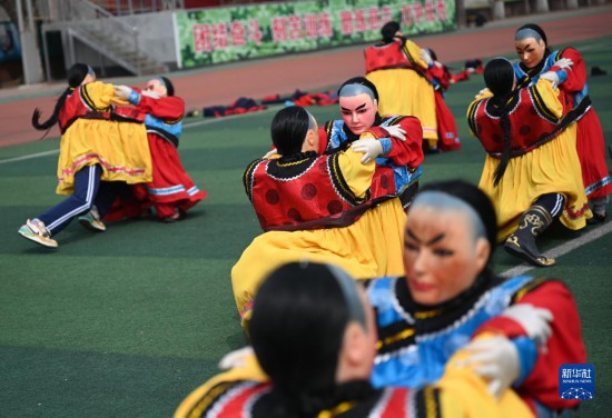 3月20日,隆化縣職教中心學(xué)生在練習(xí)國(guó)家級(jí)非遺項(xiàng)目“二貴摔跤”。