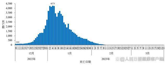 在院新冠病毒感染死亡病例數方面,于1月4日達到每日峰值4273例,隨后持續(xù)下降,3月23日為0例。3月17日至 3月23日,31個省(自治區(qū)、直轄市)及新疆生產建設兵團醫(yī)療機構累計在院新冠病毒感染相關死亡病例 0 例。