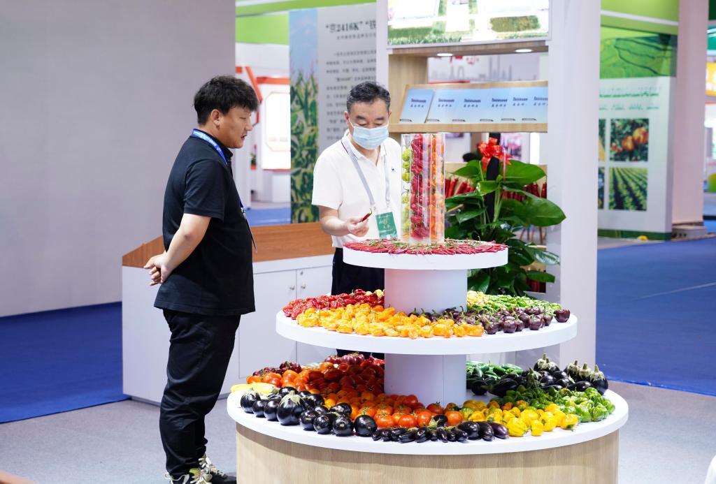2023中國種子大會暨南繁硅谷論壇在海南三亞舉行。4月1日,與會者在參觀論壇展覽。新華社記者 樊雨晴 攝