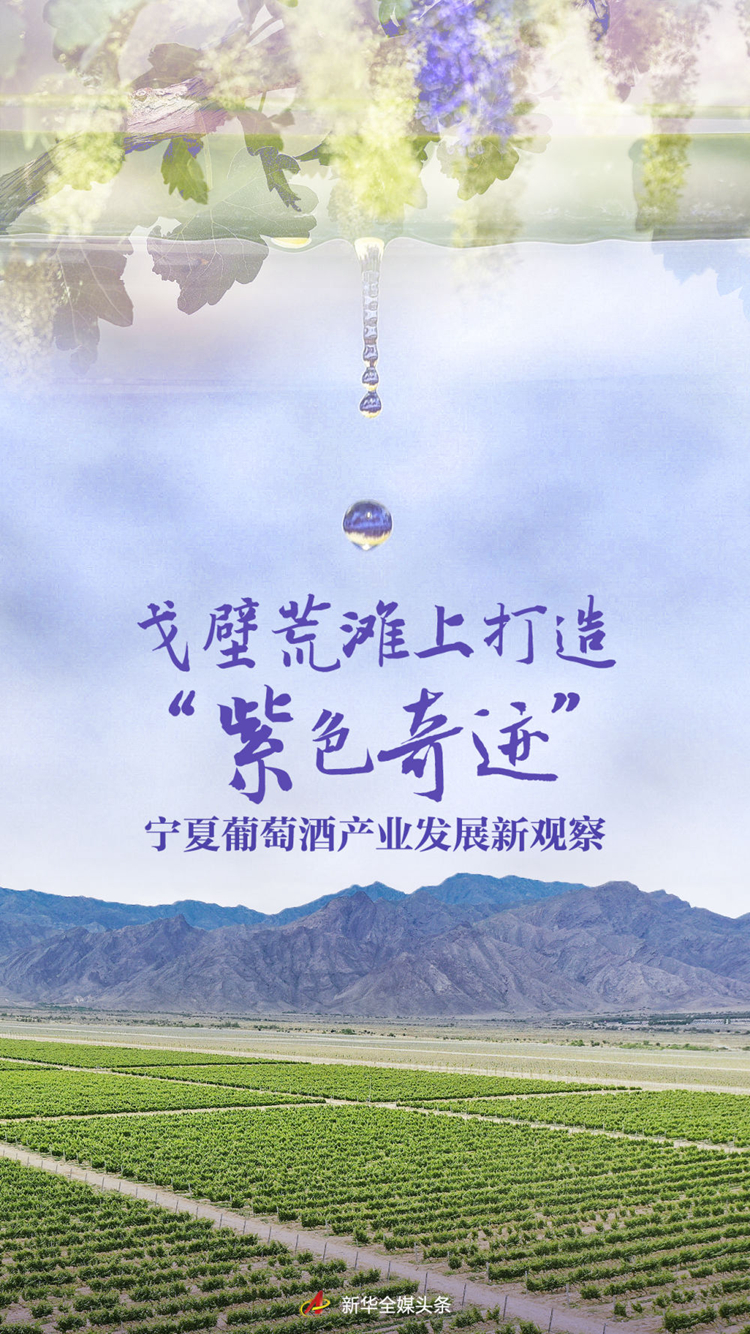 賀蘭山峰巒重疊、崖谷險峻,向東俯瞰著寧夏平原。山腳與平原之間,原是一片狹長的亙古戈壁。寧夏葡萄酒產(chǎn)業(yè)的興起和快速發(fā)展,讓這片戈壁荒灘成為盛產(chǎn)優(yōu)質(zhì)釀酒葡萄的寶地。如今,每年有1.38億瓶葡萄酒從這里走向全世界,不但產(chǎn)生可觀的“紫色經(jīng)濟”效益,更托起賀蘭山東麓的“綠色希望”和助農(nóng)增收的“富民夢想”。