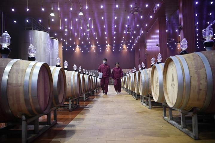 風從賀蘭山深處吹來,拂過山腳下一眼難望到頭的葡萄園。一座占地面積達5000平方米的酒窖里,自動化設(shè)備保持四季恒溫恒濕,2000個橡木桶鱗次櫛比,國際葡萄酒大賽獲獎證書一個挨著一個,擺滿了十幾米長的陳列架。