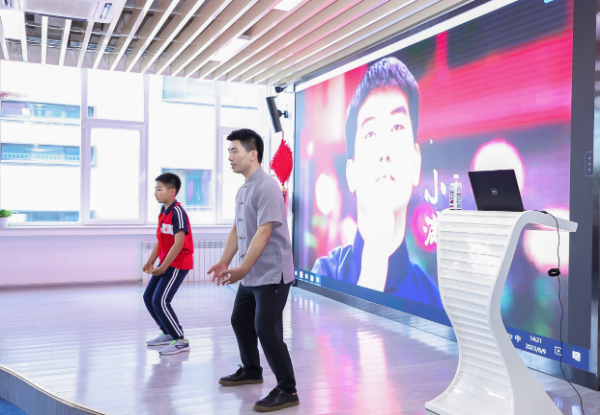 作為示范活動,北京理工大學(xué)附屬實(shí)驗(yàn)學(xué)校除了開展主題日活動,還開設(shè)了其他特色課程,舉辦中醫(yī)藥游園會,吸引眾多學(xué)生參與?;顒蝇F(xiàn)場,非遺傳承人代金剛手把手指導(dǎo)同學(xué)們練習(xí)八段錦。在中醫(yī)藥文化知識角,一名同學(xué)正跟著屏幕上的動作指引練習(xí)五禽戲。除了智能互動系統(tǒng),學(xué)校還專門布置中醫(yī)藥展覽、藥物標(biāo)本、器具模型等,讓同學(xué)們時(shí)時(shí)感受多樣的中醫(yī)藥文化。