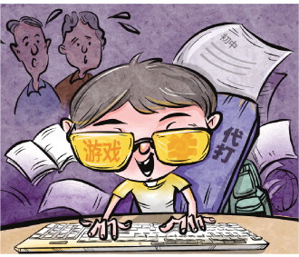 可好景不長,“雙雙”因為打游戲時間過長,學習成績一塌糊涂,經(jīng)常被老師拉去單獨談話。但她對老師的批評左耳朵進右耳朵出,回家后仍是將書包一扔,熟練地啟動電腦開始打游戲。