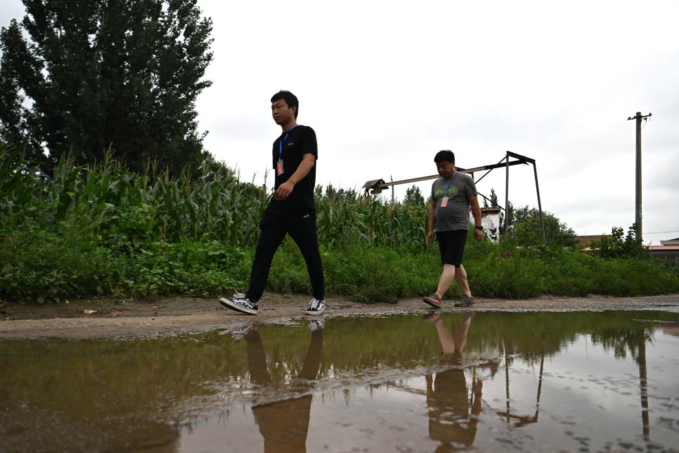 陳曦(左)與村干部一道巡查村內(nèi)情況。新華社記者 趙子碩 攝