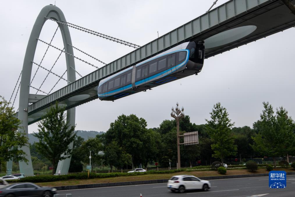 9月26日,空軌列車在運(yùn)行中。新華社發(fā)(杜子璇 攝)