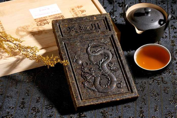 湖北長盛川青磚茶制作技藝,傳承已有六百余年,至今完整保留著渥堆發(fā)酵工藝,茶磚壓制緊密,茶湯滋味醇厚。