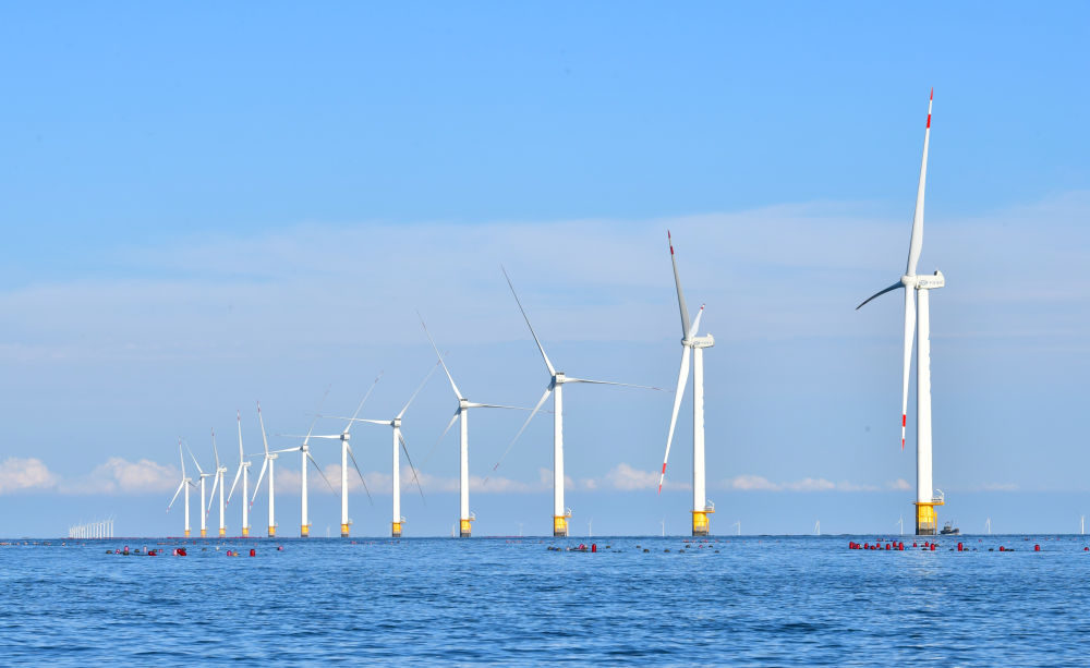 2023年9月13日拍攝的遼寧大連莊河海上風(fēng)電項(xiàng)目。新華社記者 楊青 攝