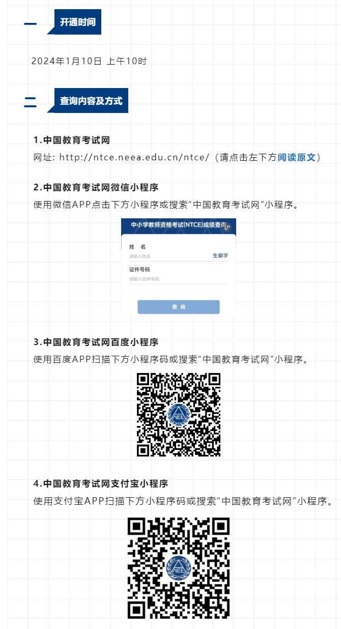 2023年下半年中小學(xué)教師資格考試(面試)結(jié)果、考試合格證明于2024年1月10日開(kāi)通查詢,現(xiàn)將有關(guān)事宜通知如下: