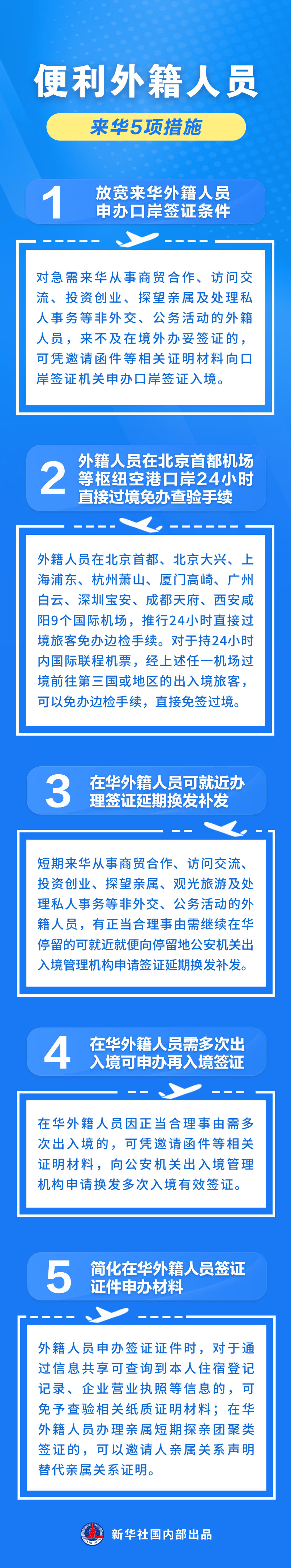 便利外籍人員來華5項措施施行 國家移民管理局詳解