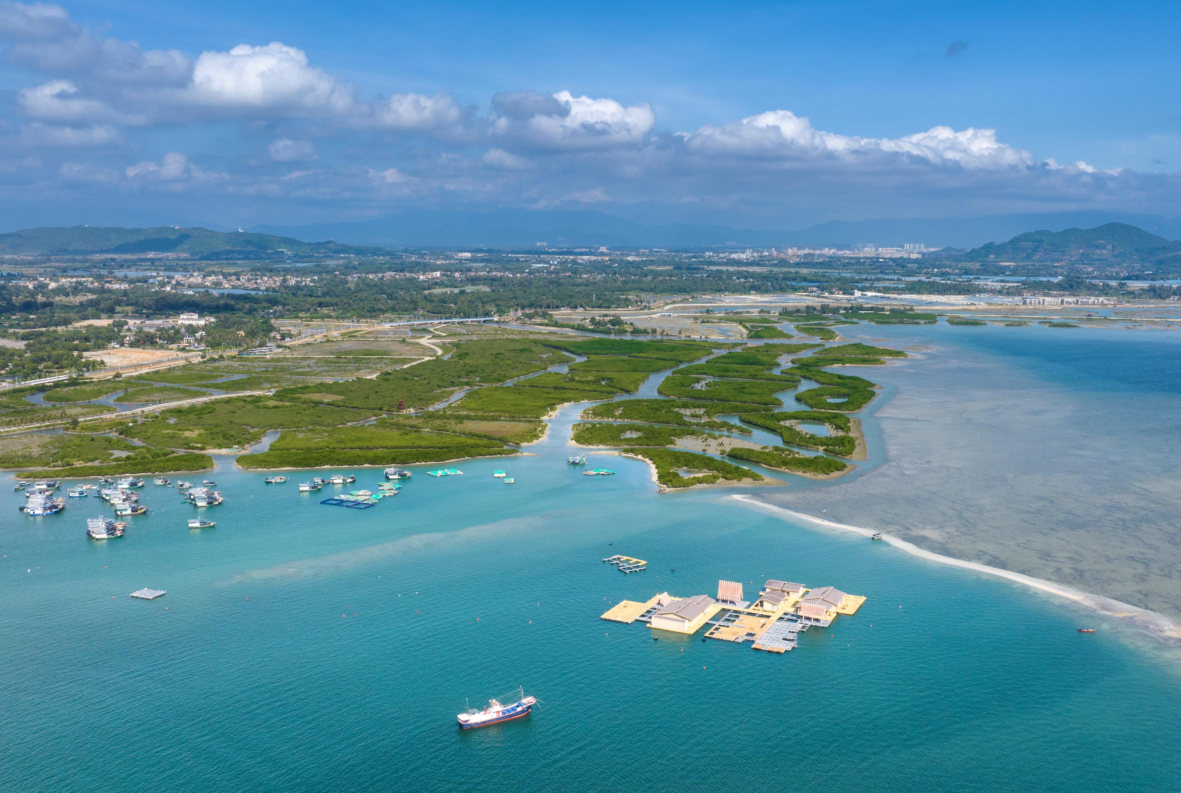 △海南陵水紅樹(shù)林國(guó)家濕地公園。紅樹(shù)林素有“海岸衛(wèi)士、鳥(niǎo)類天堂、魚(yú)蝦糧倉(cāng)”的美譽(yù),在凈化海水、防風(fēng)消浪、維持生物多樣性、固碳儲(chǔ)碳等方面發(fā)揮著極為重要的作用。